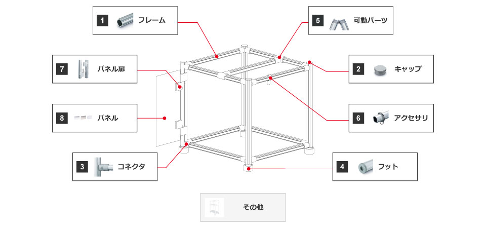また、フレームやコネクタだけでなく、下図のように、いろいろな部品が提供されていて、自分の欲しいものを簡単に作ることができます。