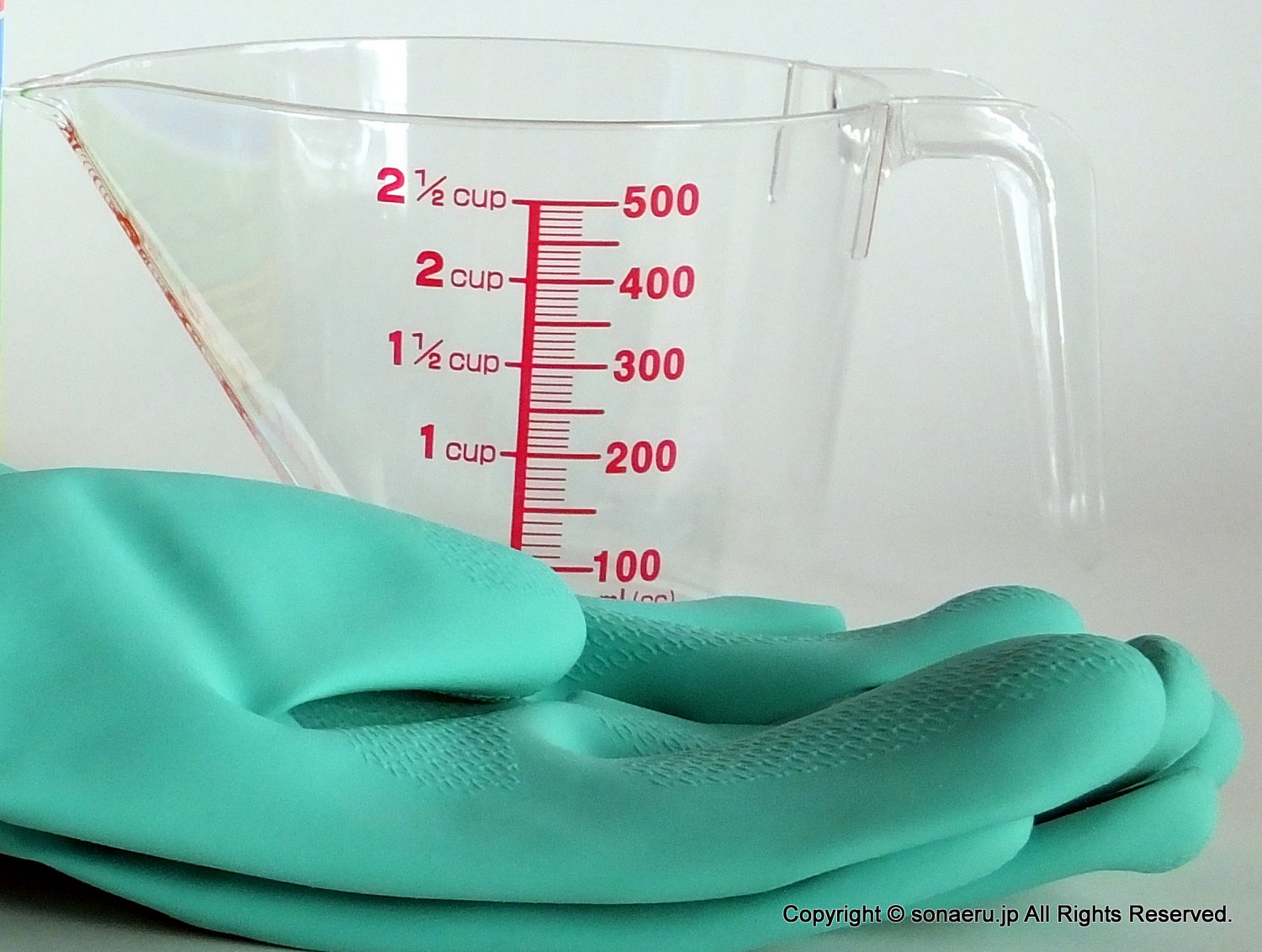 うがいに使うときも、加湿器と同じ50ppmの濃度が適当ということなので、コップの中で10倍に希釈して口に含みます。